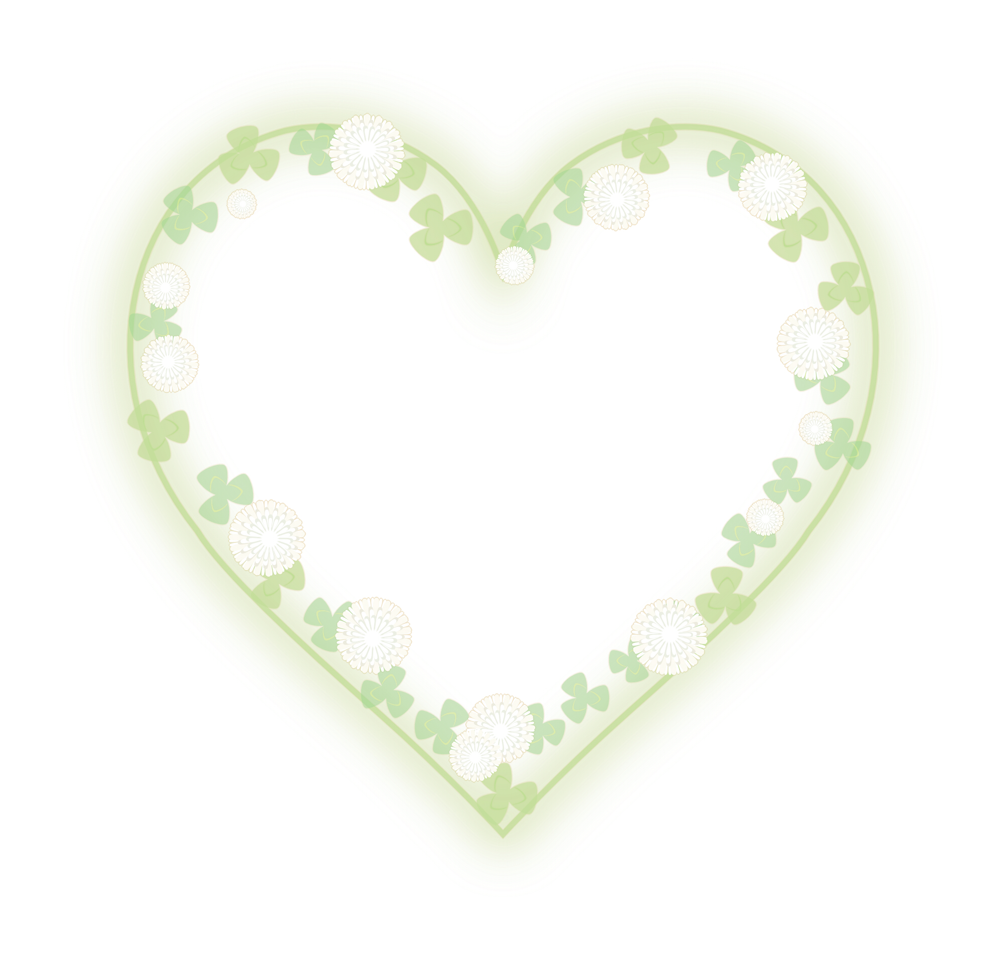 シロツメクサの花とクローバーの葉をイメージした、ハート型フレームイラストです。左右それぞれのフレームについて、下記からサイズ大きめのjpg・png画像がダウンロードできます。