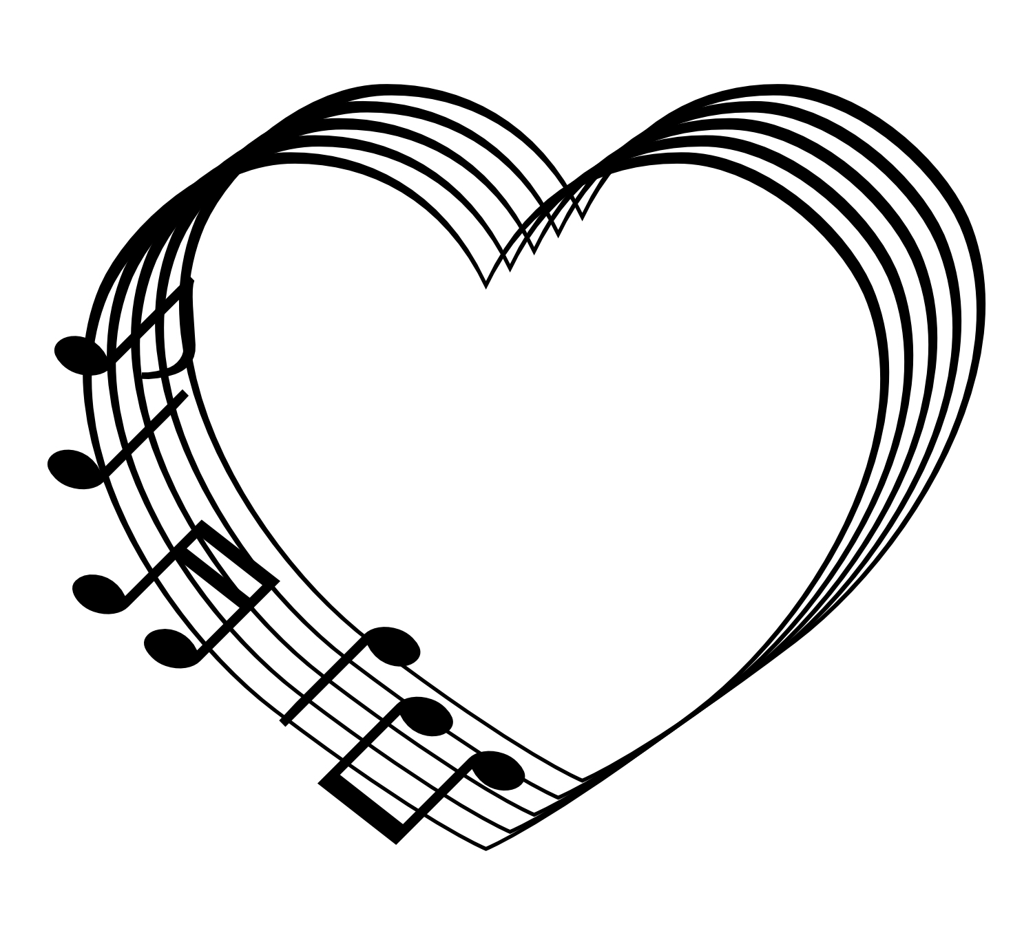 五線がハートマークの上に音符が重なったイラスト素材です。png素材では、背景の白い部分がすべて透過します。