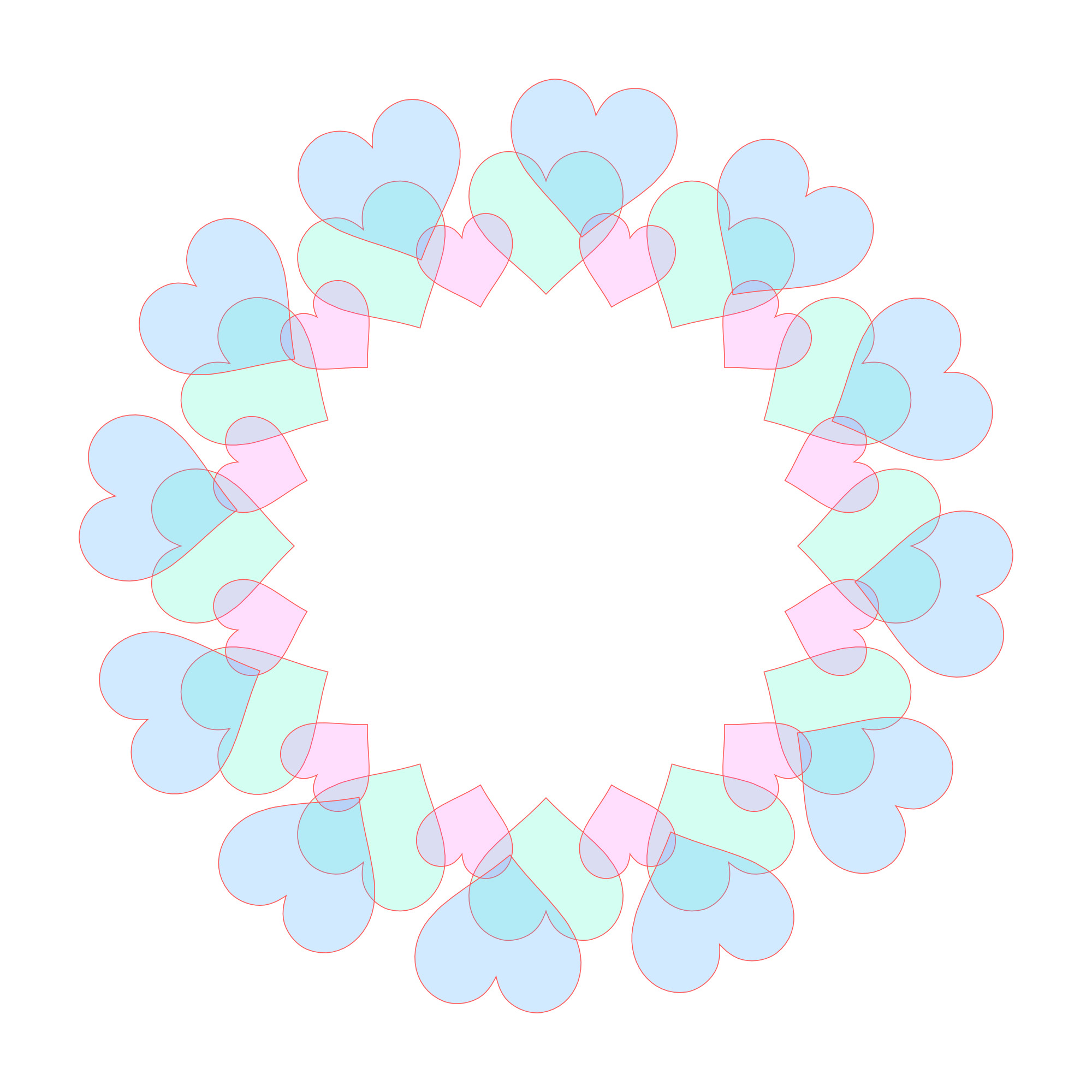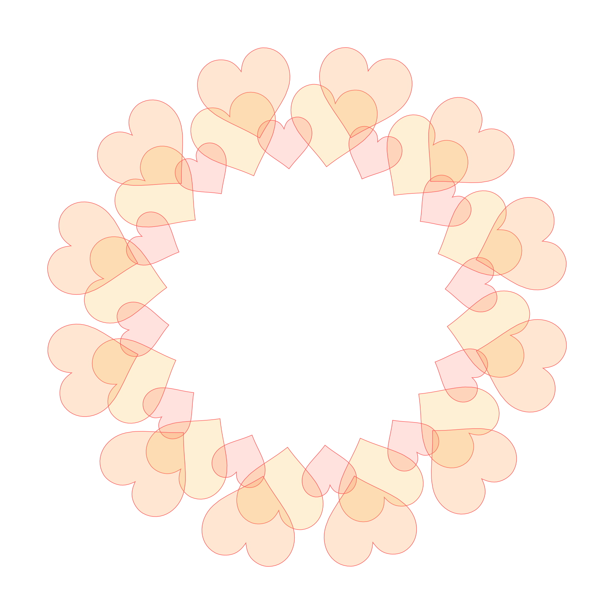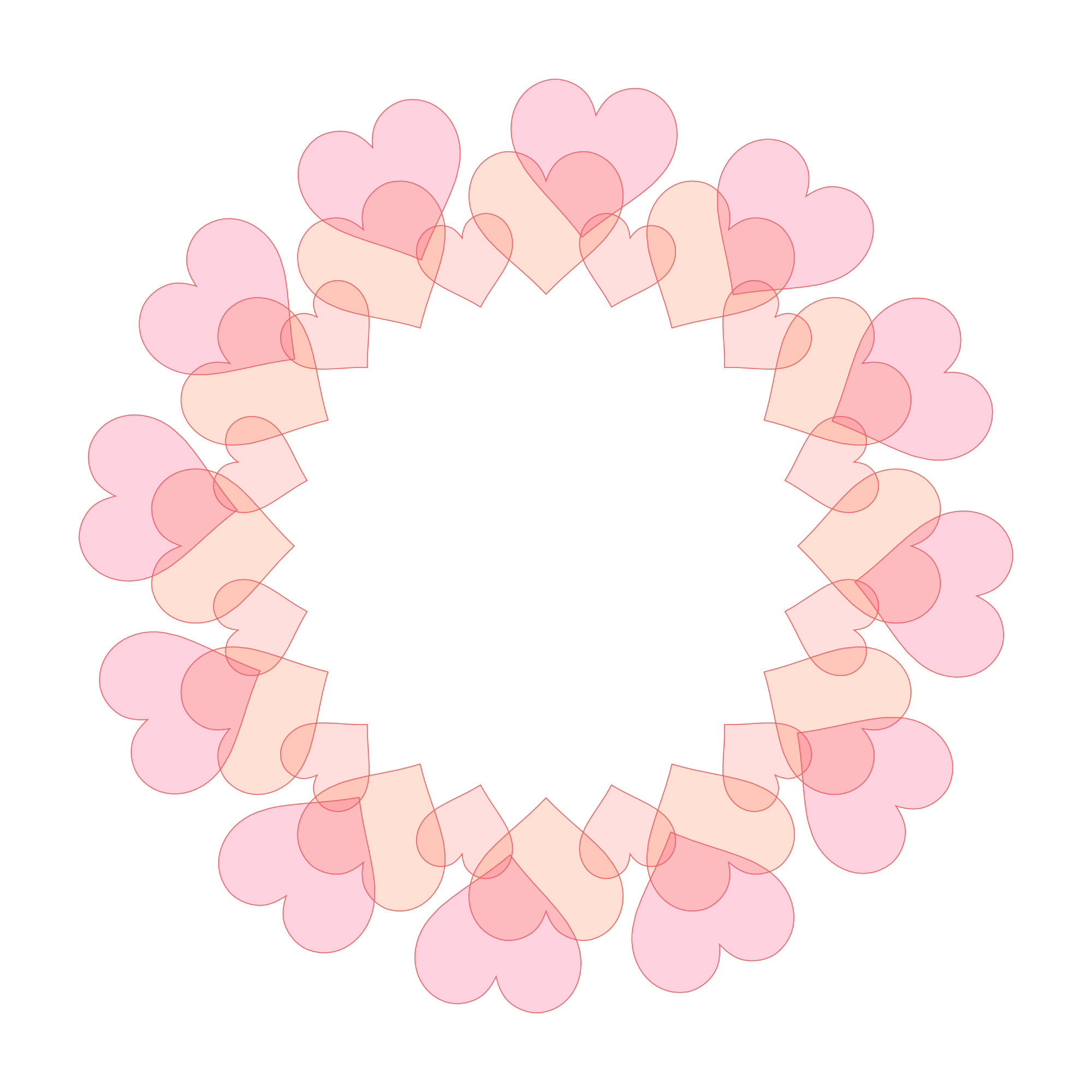 ハート模様が連なった五色の輪っかフレームです。それぞれ色別の画像も下記からダウンロードできます。透過素材は着色部分にも透明度があります。