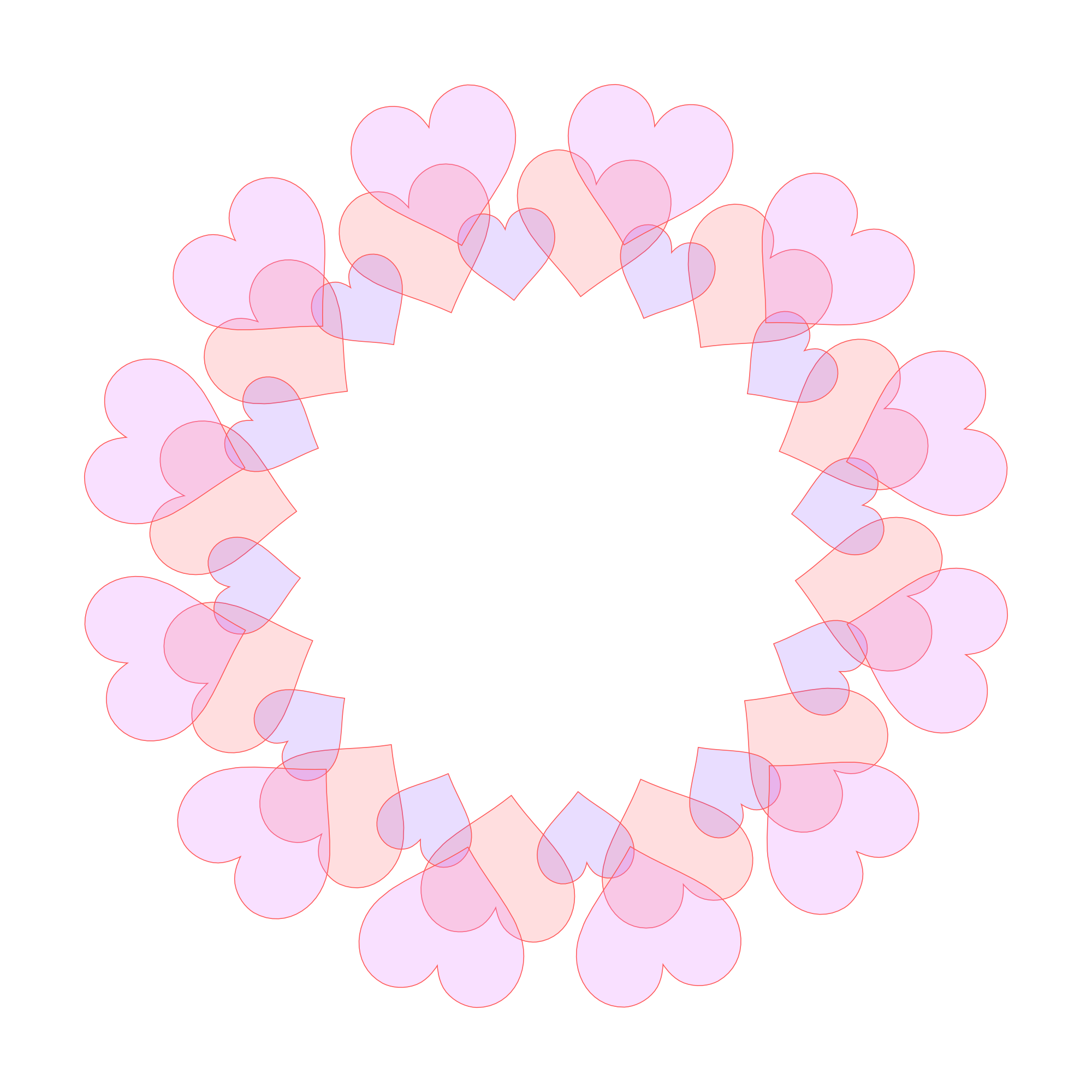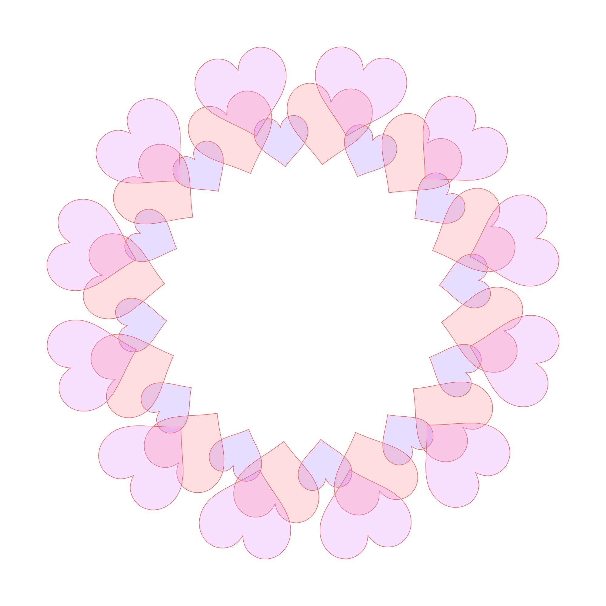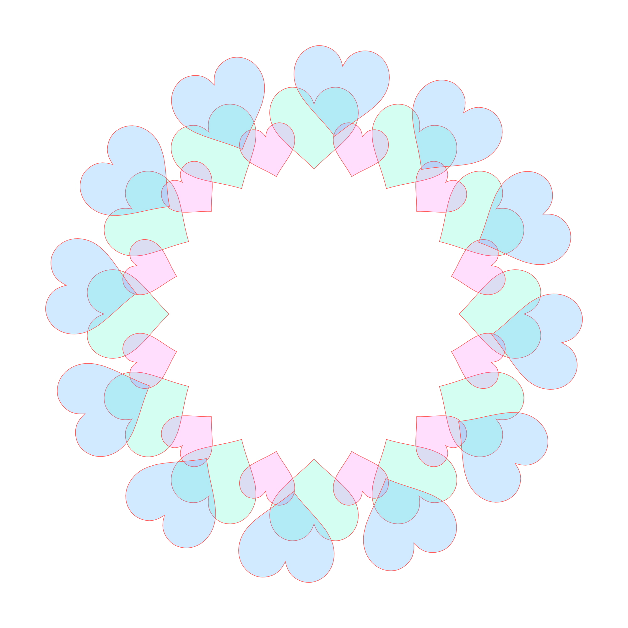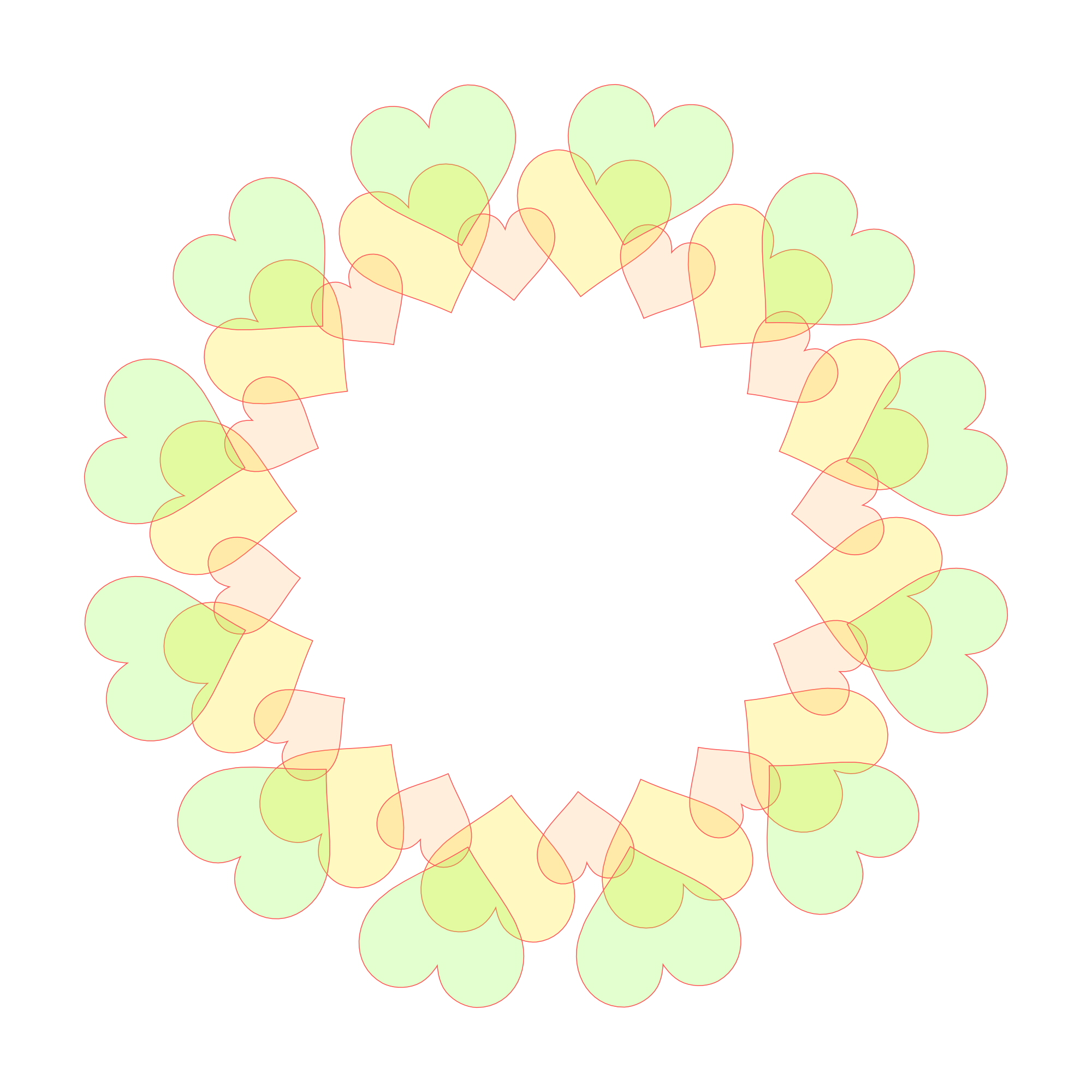 ハート模様が連なった五色の輪っかフレームです。それぞれ色別の画像も下記からダウンロードできます。透過素材は着色部分にも透明度があります。