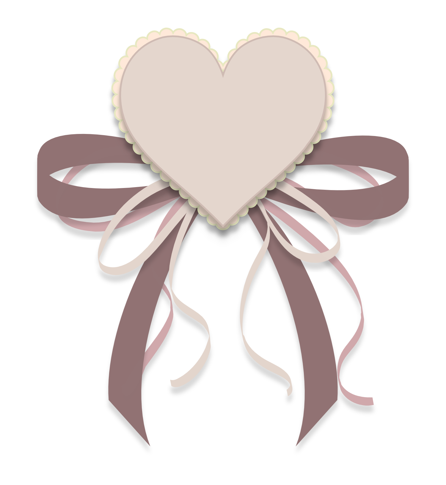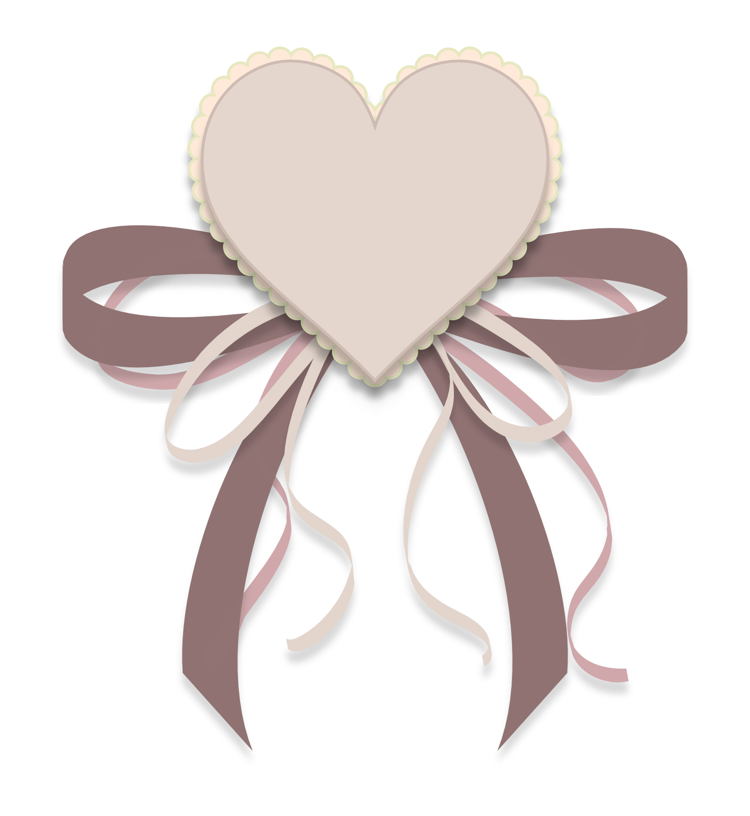 ハートにリボンの装飾が付いたイラスト素材のグレー・ベージュ版です。透過png画像は背景の白色部分がすべて透過しています。