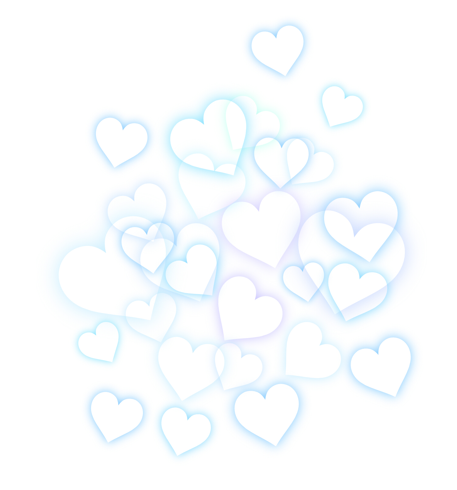 白抜きのハートが散らばっている背景素材です。ぼやけた淡い色のピンク・ブルーのハートがランダムに重なっています。