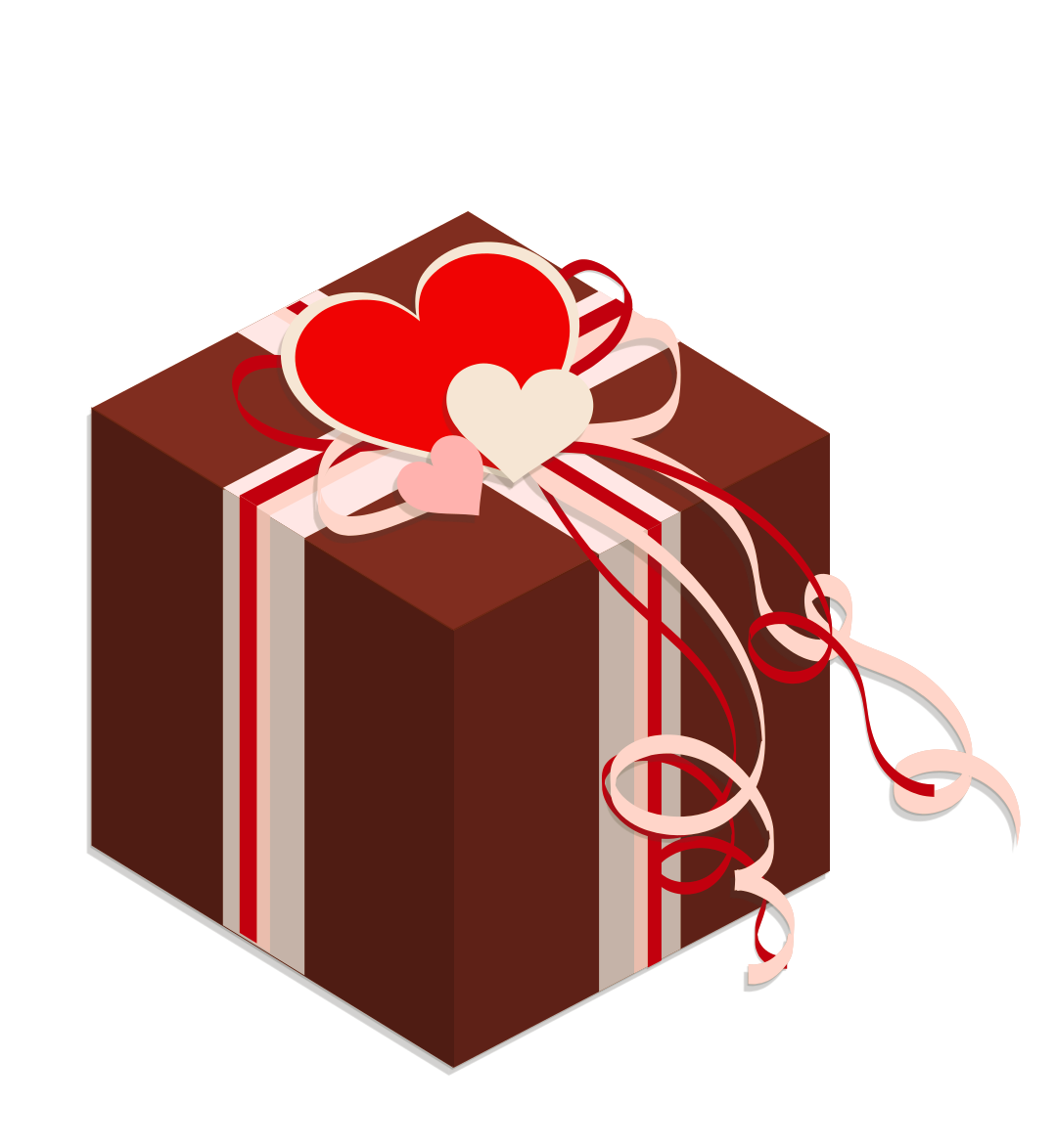 リボンとハートの飾りがついた、プレゼント箱のイラスト素材です。ピンクとチョコ色、それぞれ個別の大きめ画像もダウンロードできます。