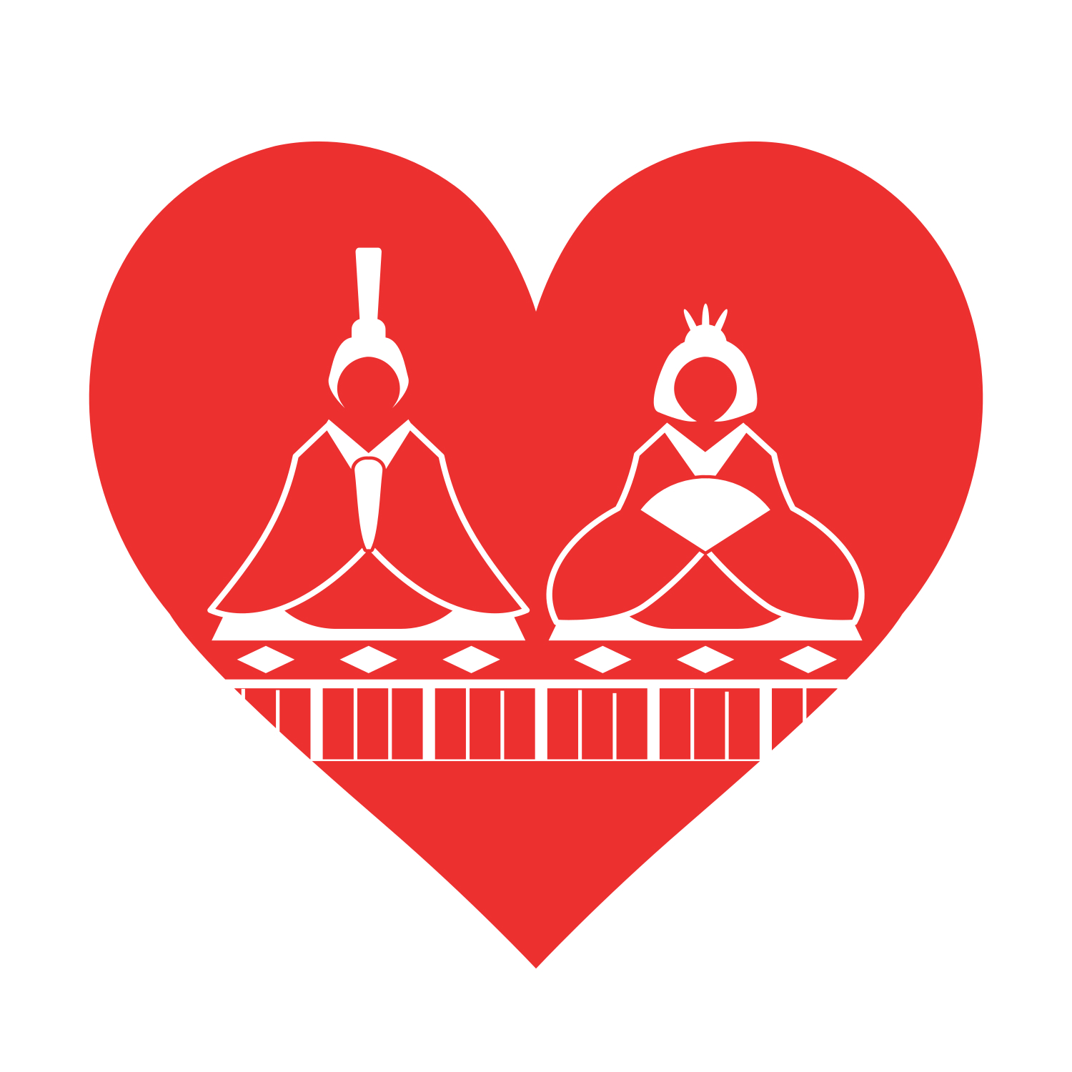 お雛様とお内裏様のシンプルな線画が白抜きされた赤いハートと、ぼんぼりのイラスト素材です。下記から大きめの個別画像がダウンロードできます。png画像では、白い部分がすべて透明になっています。