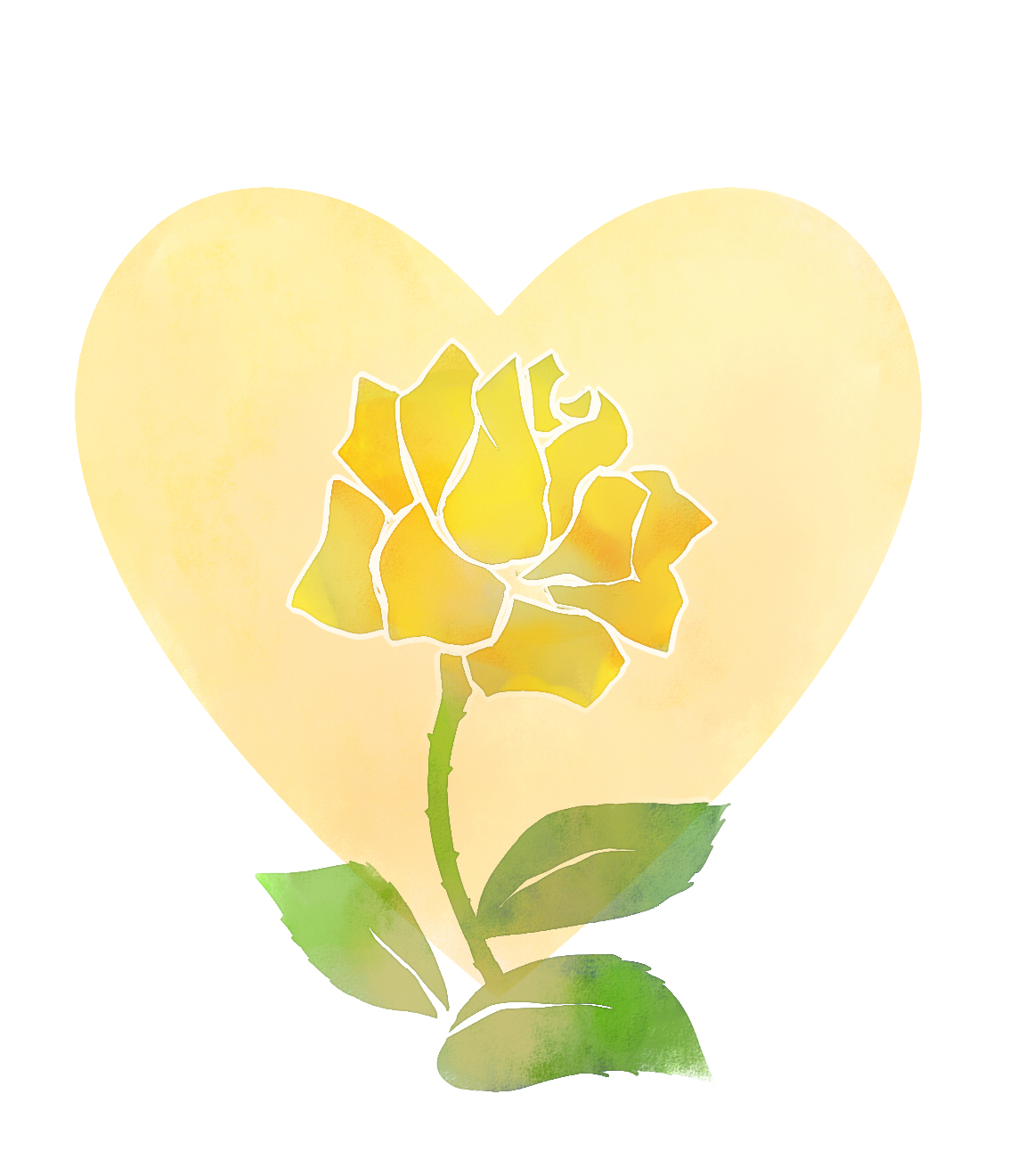 バラの背景にハートが描かれた水彩風のイラスト素材です。下記から青・赤・黄色の個別画像を大きめサイズでダウンロードできます。