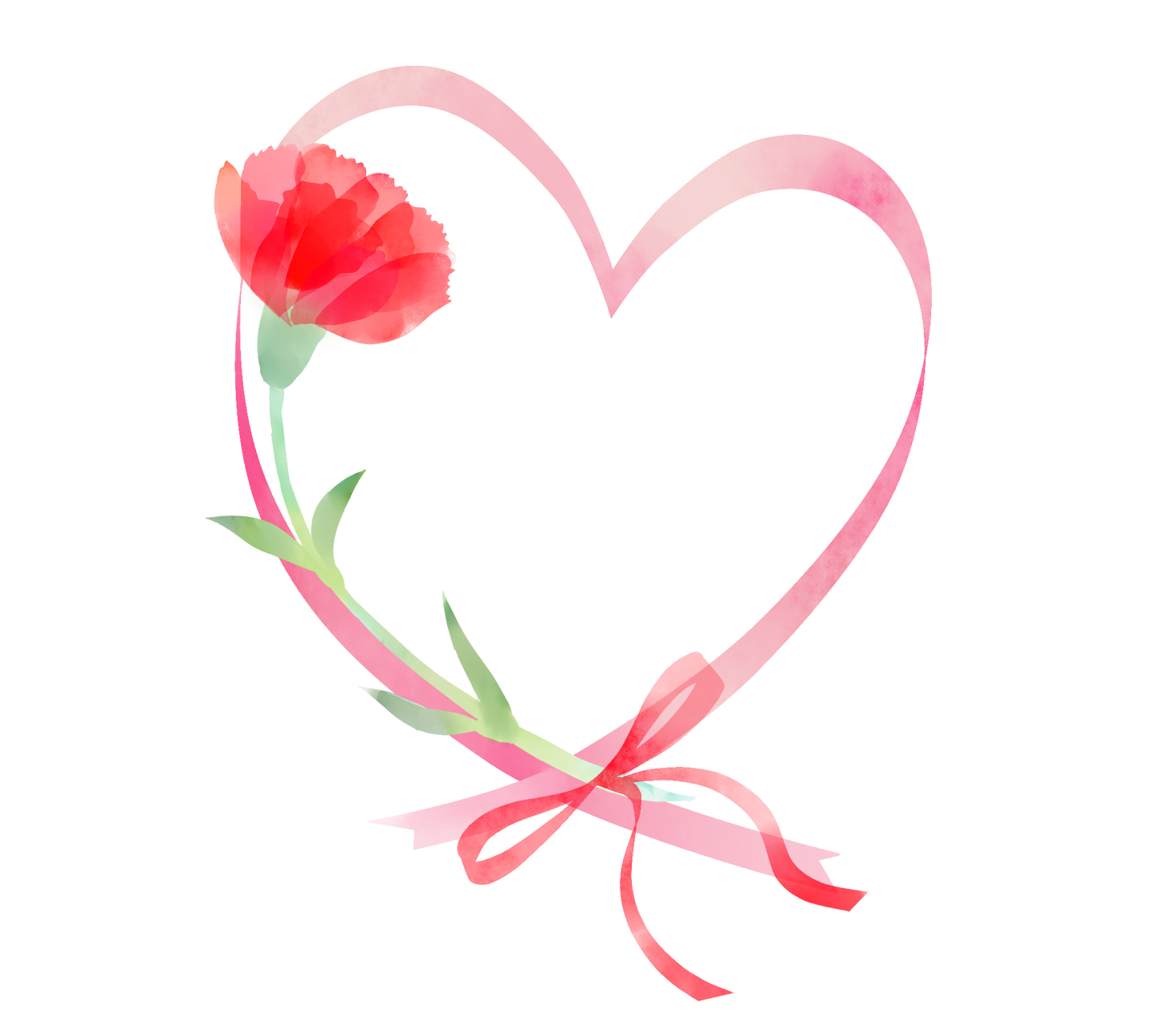 カーネーションとリボンの水彩風ハートフレームです。文字無しバージョンとカーネーションイラスト単体の素材も、下記からダウンロードできます。