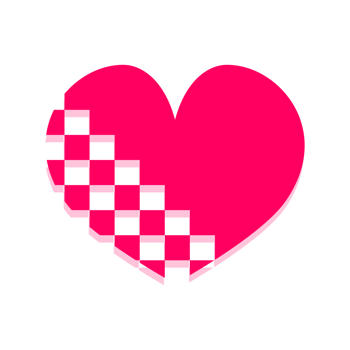 一部が市松模様になっている、濃いピンク色のハートマーク素材です。それぞれのハートマークについて透過png・jpgの大きめ画像が下記からダウンロードできます。