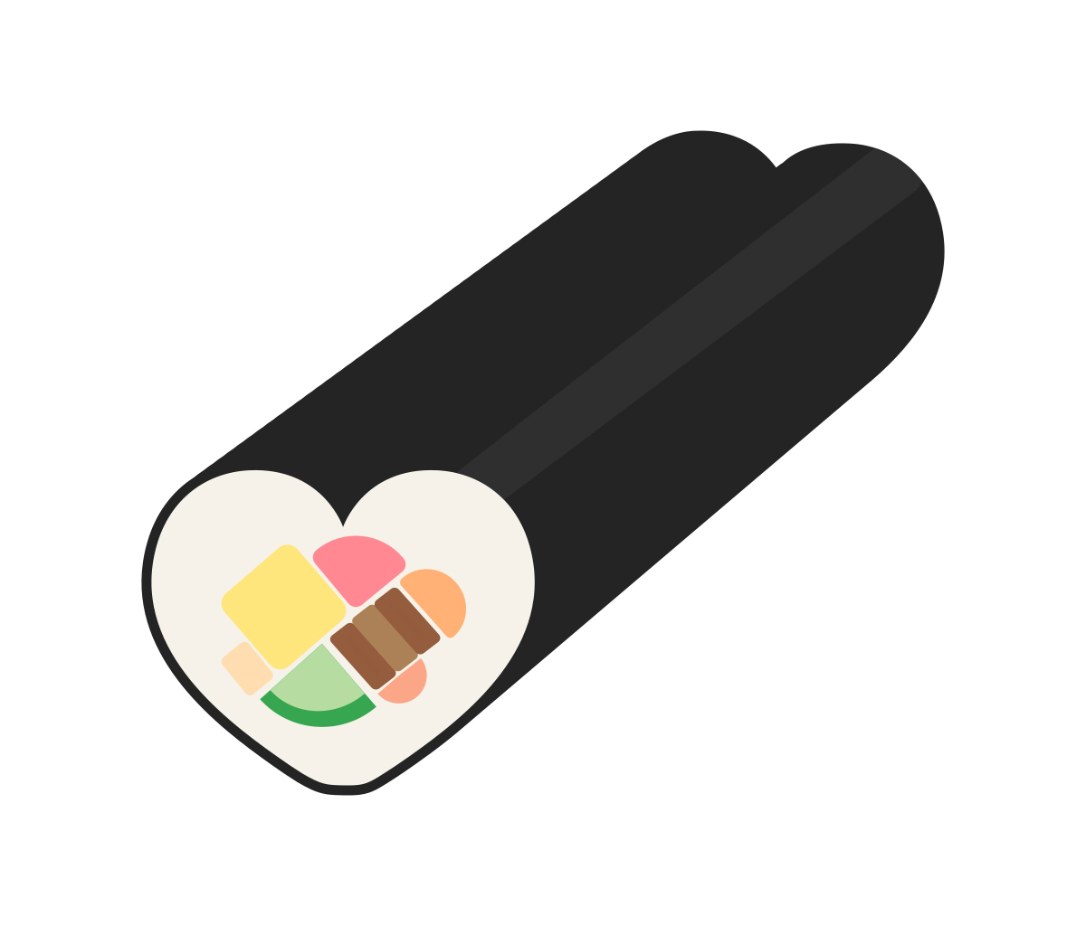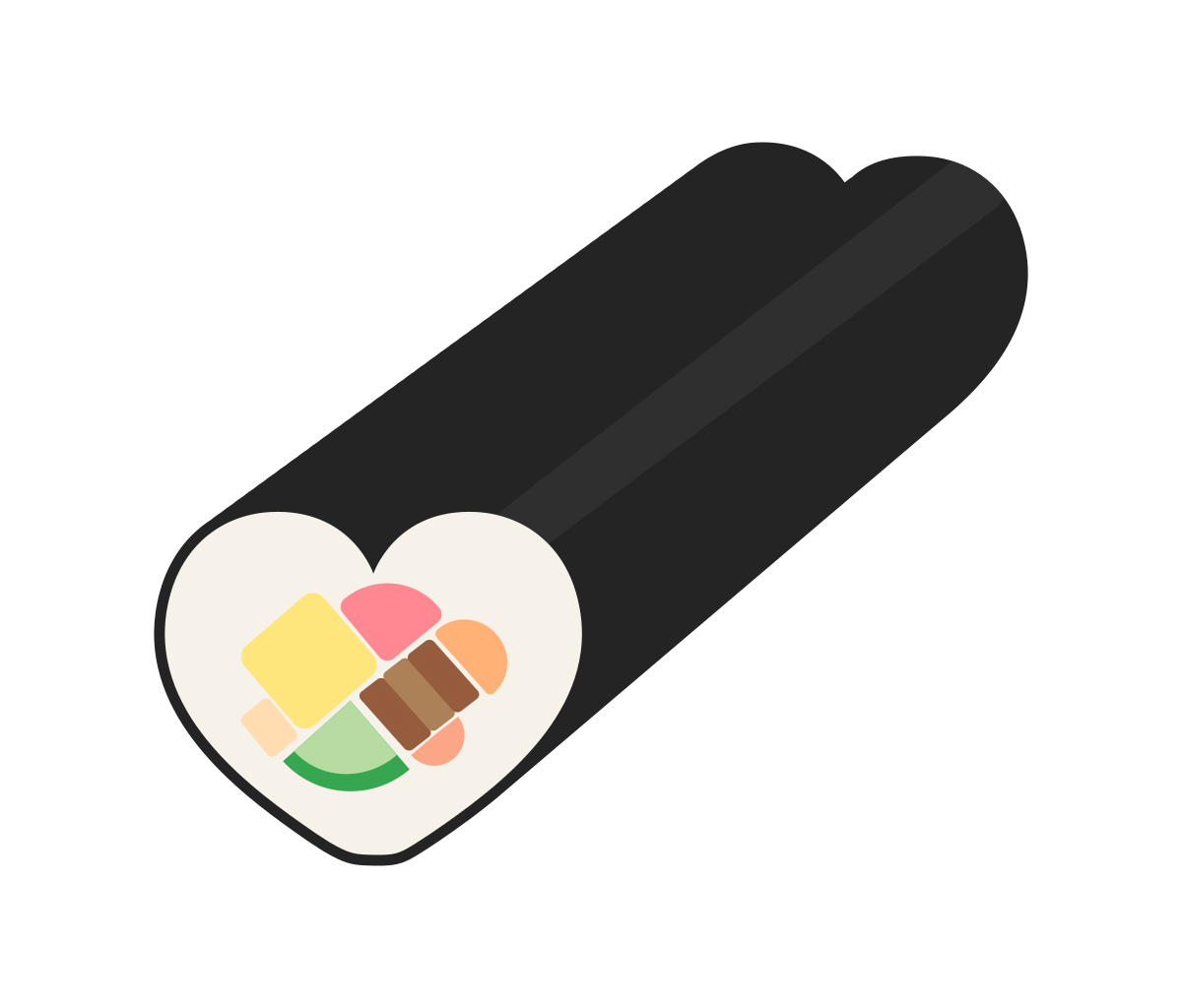 ハート型の恵方巻のイラスト素材です。下記から大きめ画像がダウンロードできます。