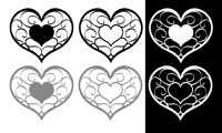 装飾的なハートのフリー素材です。少しずつデザインの異なるものを、5種セットにしています。